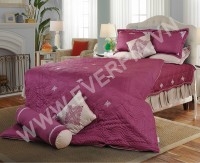 Ý tưởng hoa văn cách điệu từ ren là nguồn cảm hứng sáng tạo thiết kế cho bộ sản phẩm. Với sự kết hợp màu sắc tím và ghi với những đường cắt cúp lượn tròn ở bèo ga đã tạo nên sự mới lạ, sang trọng cho bộ chăn ga.